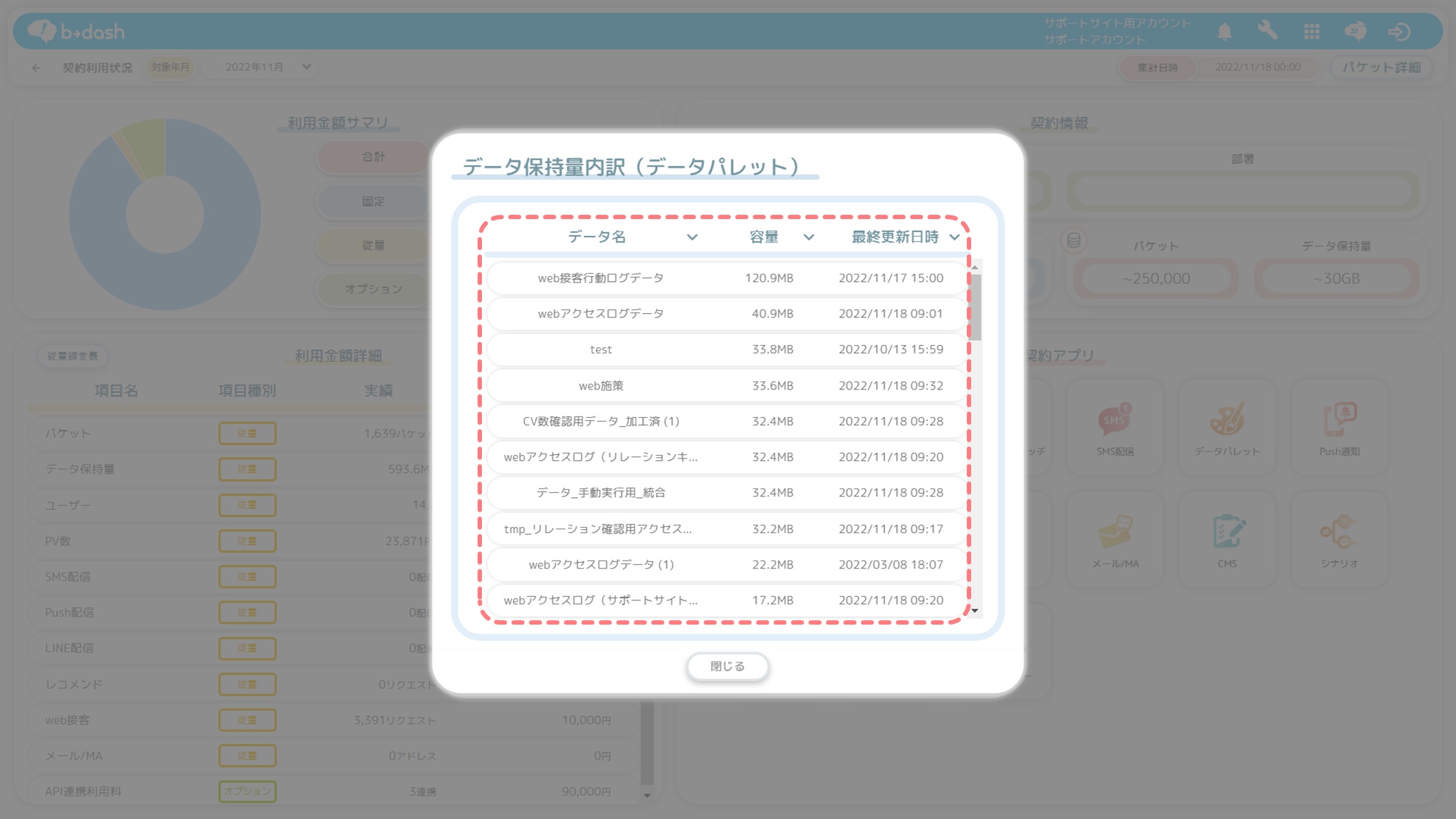 データ保持量の確認2