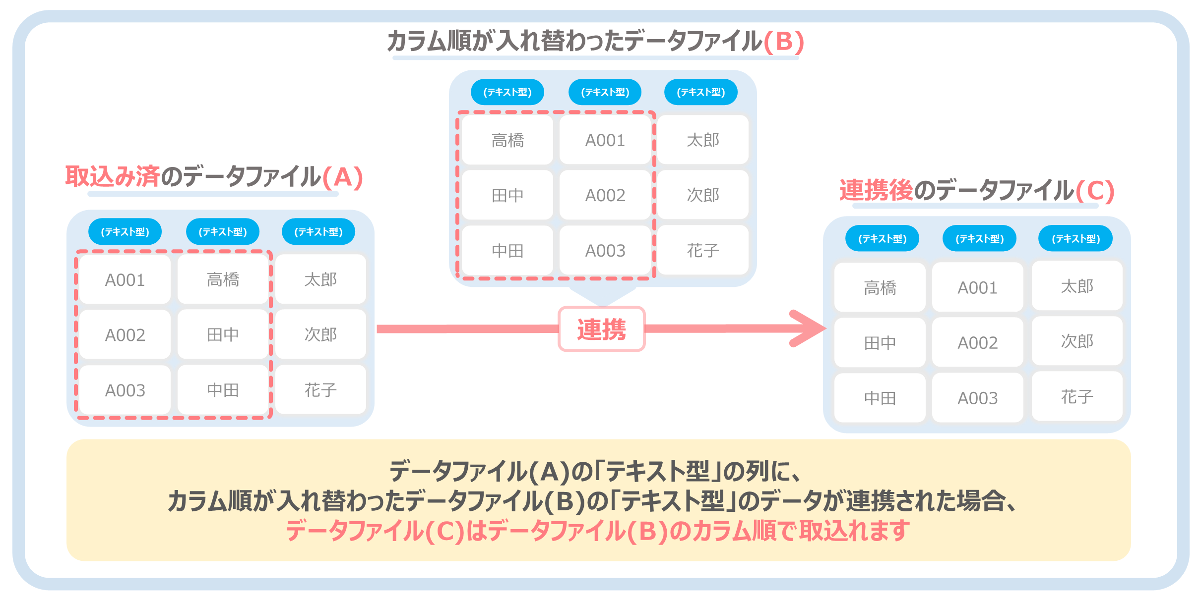 既にb→dashに連携されているデータのカラム順と連携されるデータのカラム順が異なる場合