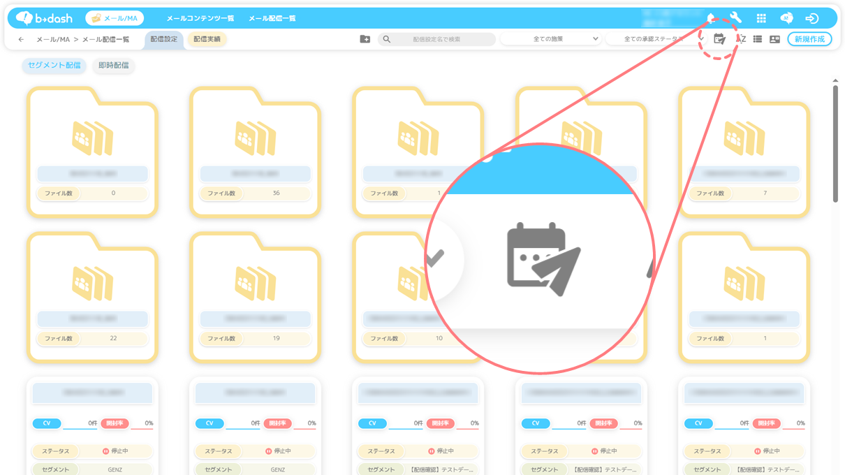 ●「メール/MA」アプリの「配信結果一覧モーダル
