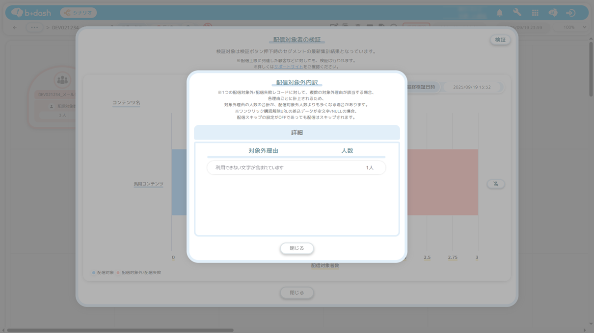 ●「シナリオ」アプリの「配信対象者の検証モーダル」「配信対象外内訳モーダル