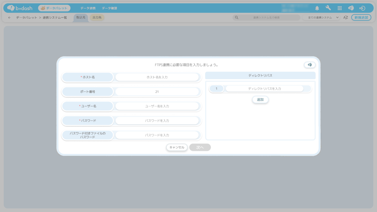 データパレット|「FTPS」連携で『ディレクトリパス』を複数指定できる