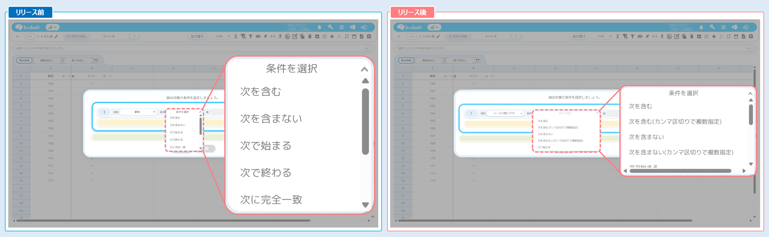 抽出条件設定で『カンマ区切りで複数指定』の選択肢を追加