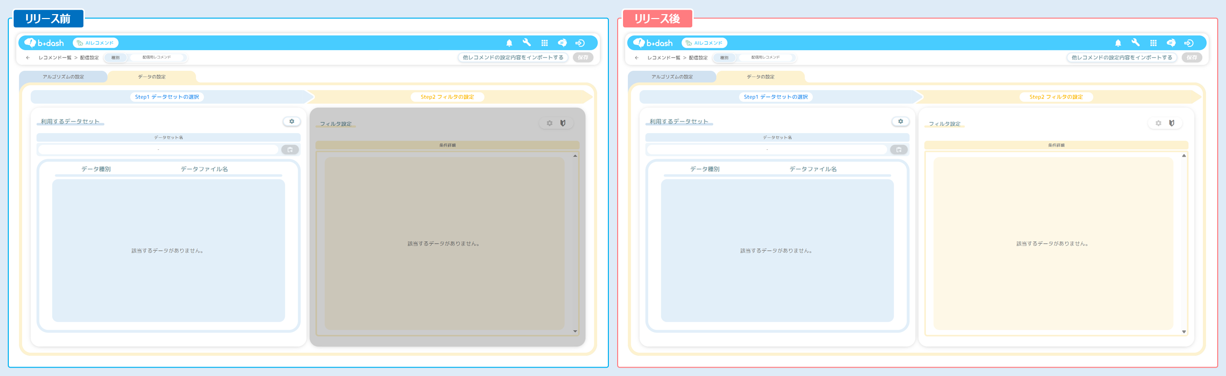 「AIレコメンド(配信用レコメンド)」の配信設定の作成において、レコメンドデータへフィルタ条件を設定できるようになります。