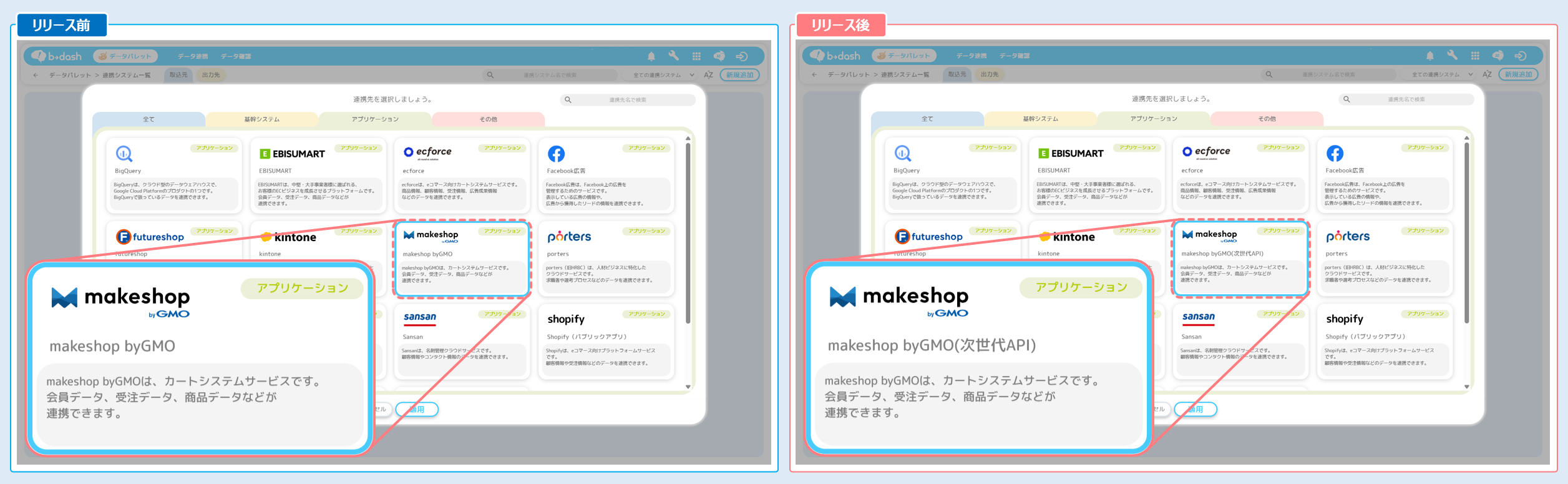 ※ 既存の『makeshop byGMO』とは、別の連携システムとして作成されます