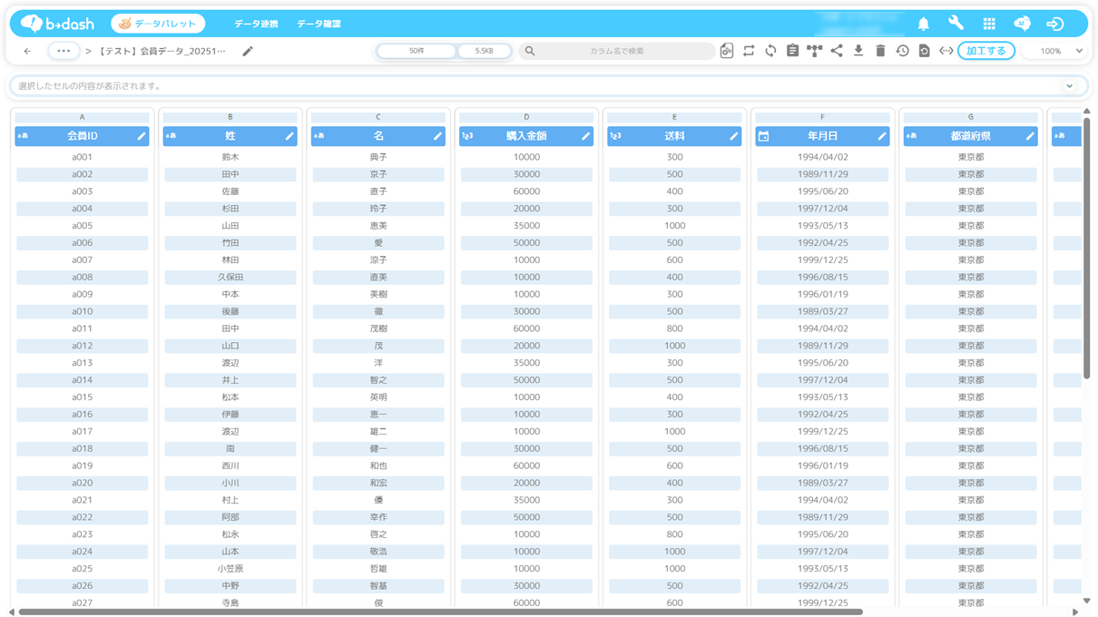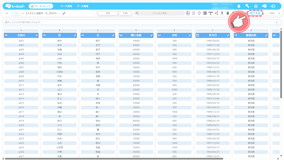 データを加工したい場合は、「加工する」をクリックします