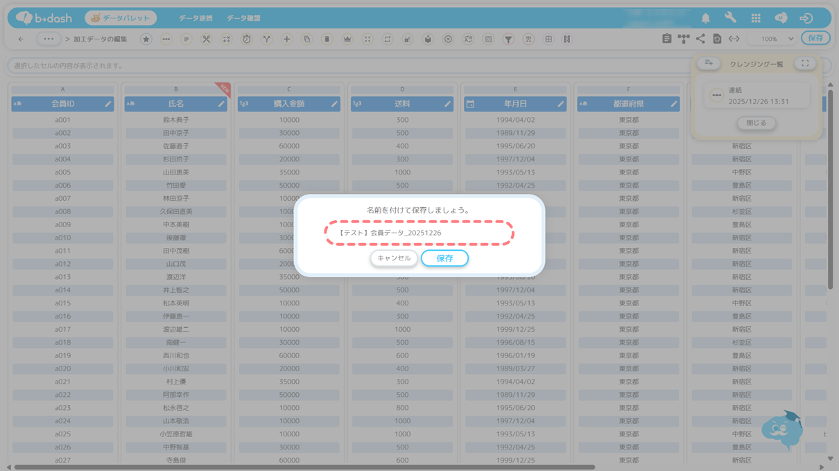 データファイル名の編集 データファイル名の横の「鉛筆アイコン」をクリックすることで、データファイル名の編集を行うことができます。