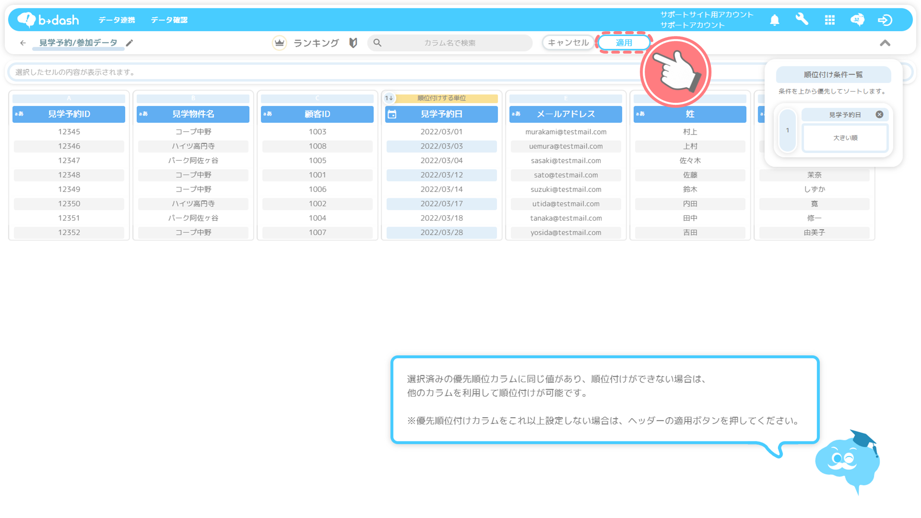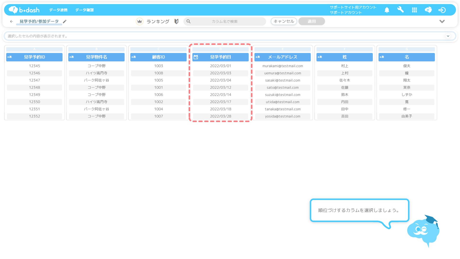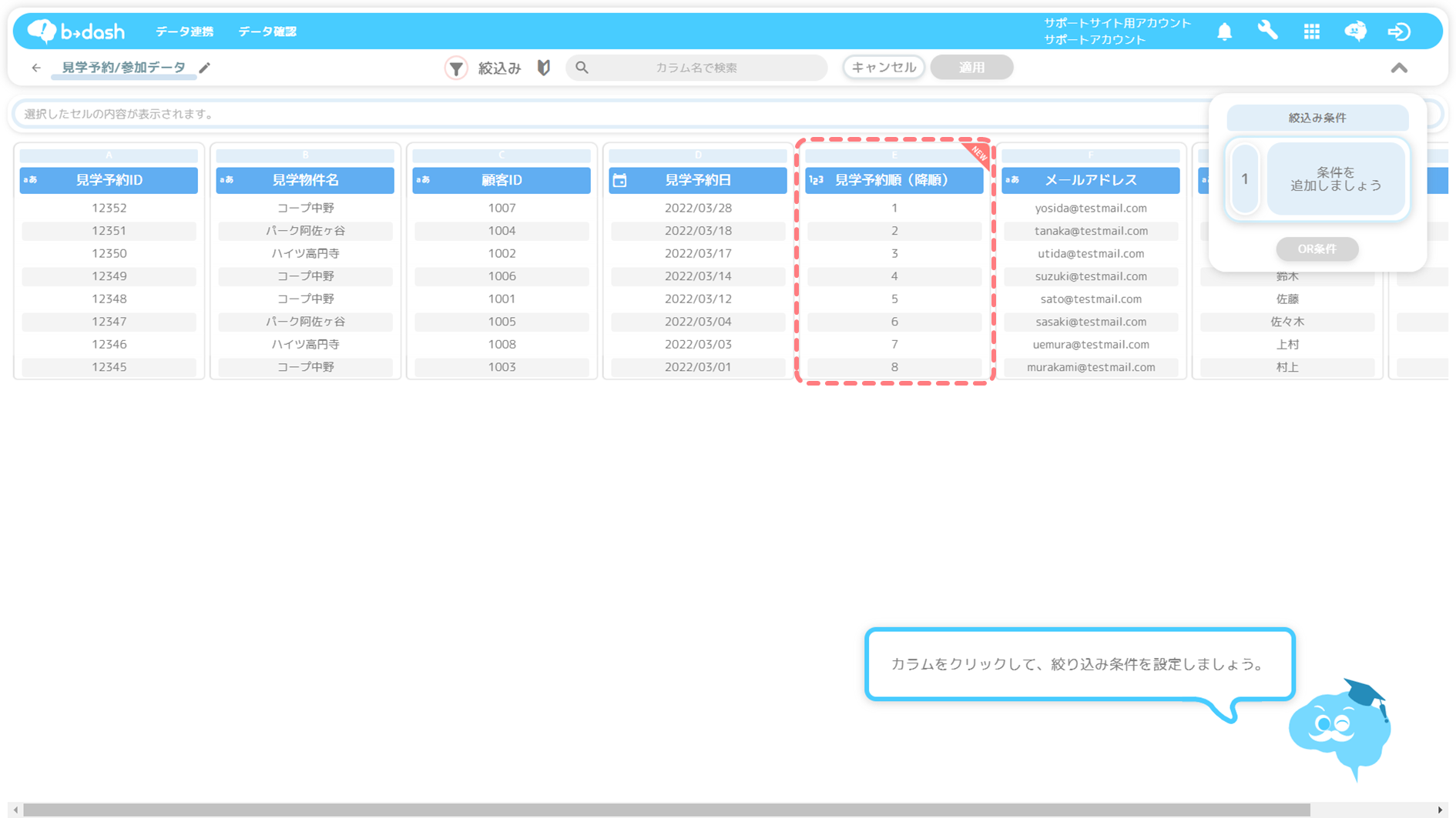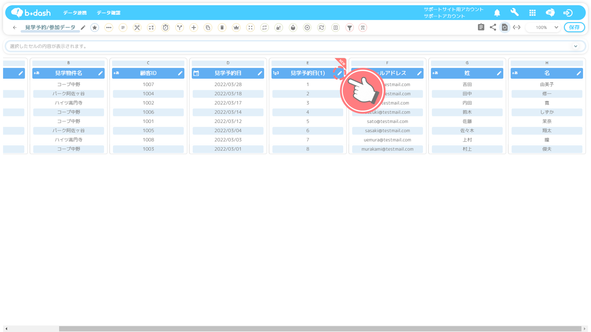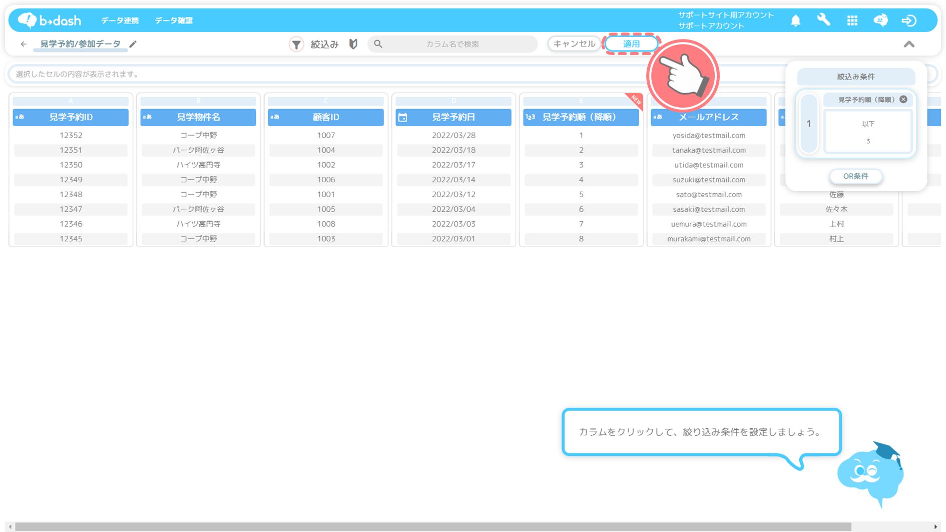 「見学予約日」カラムをクリックします