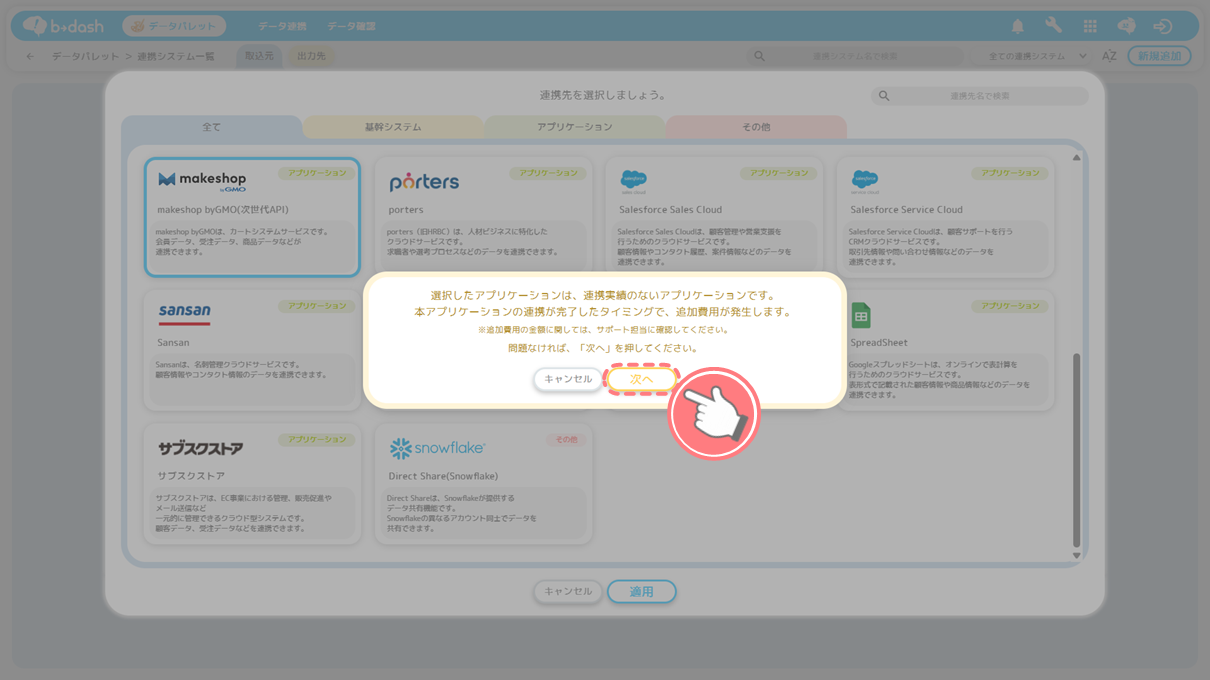 「makeshop(次世代API)」を選択し、「適用」をクリックします