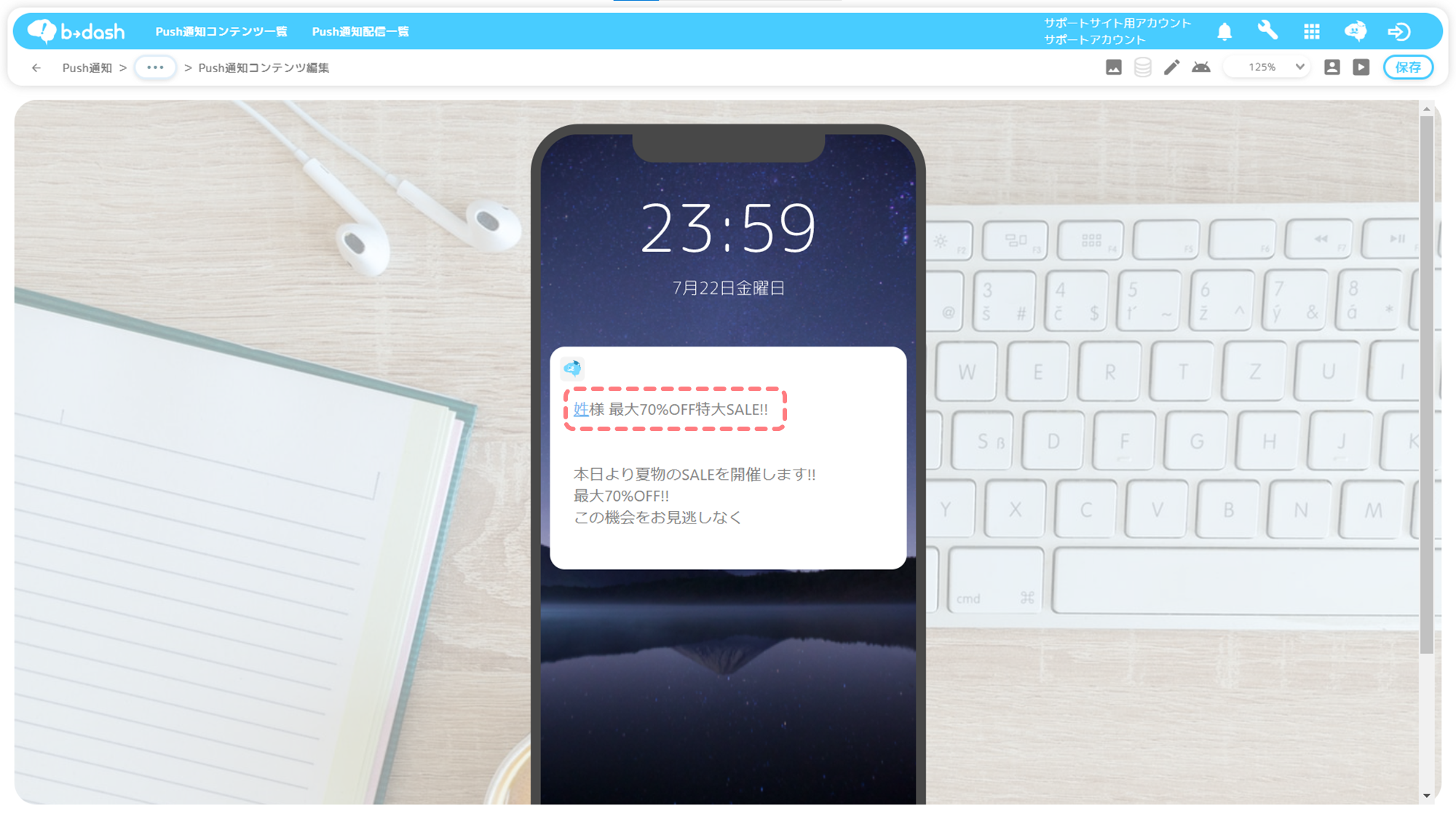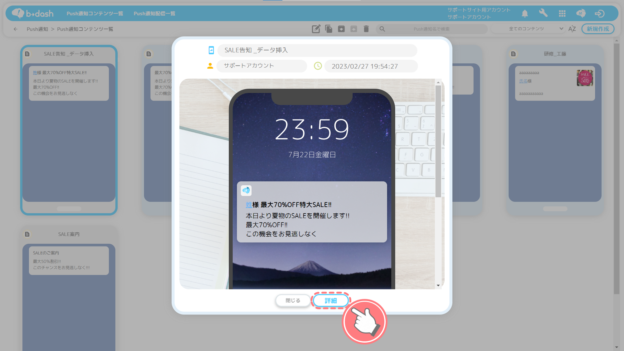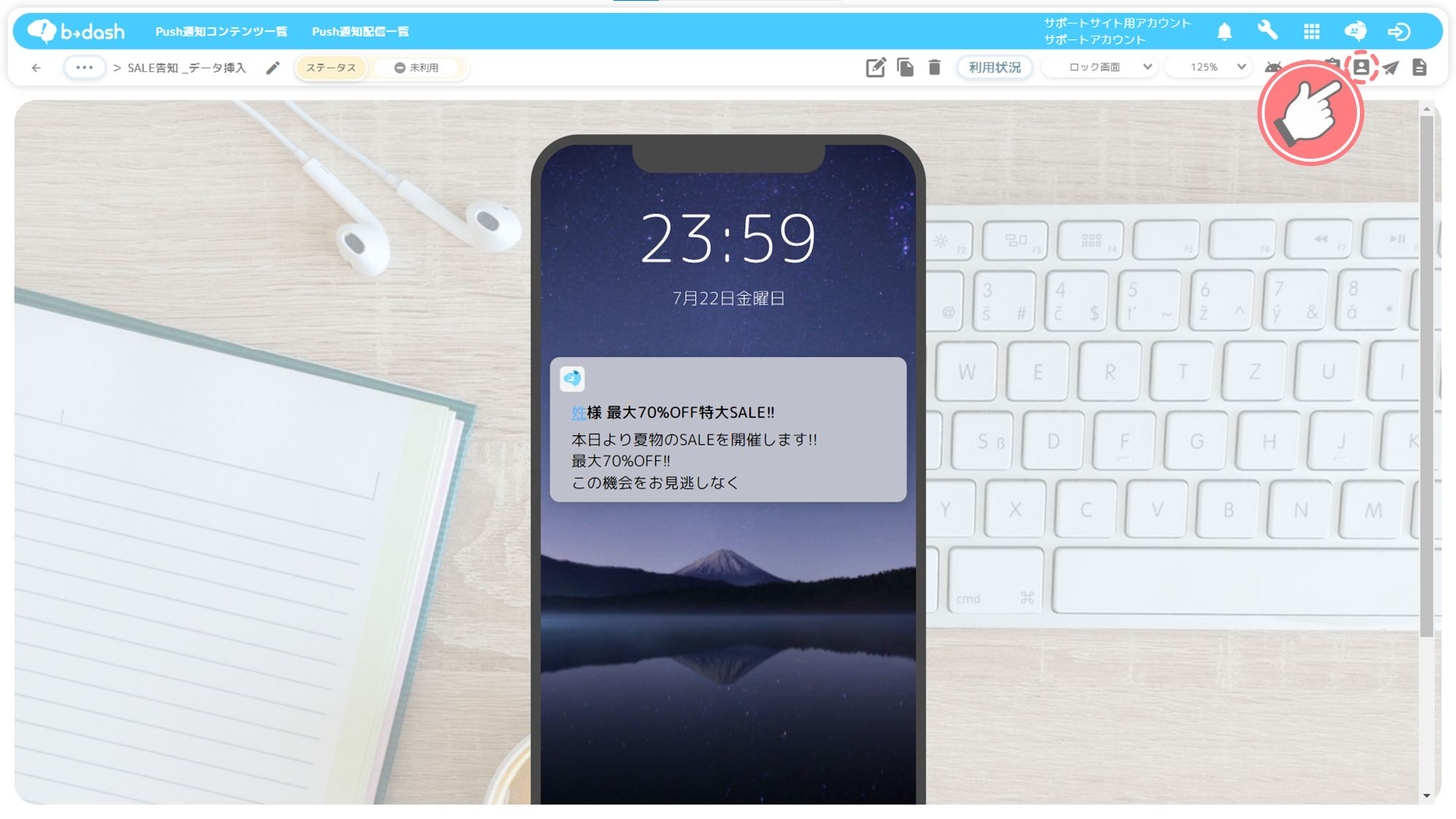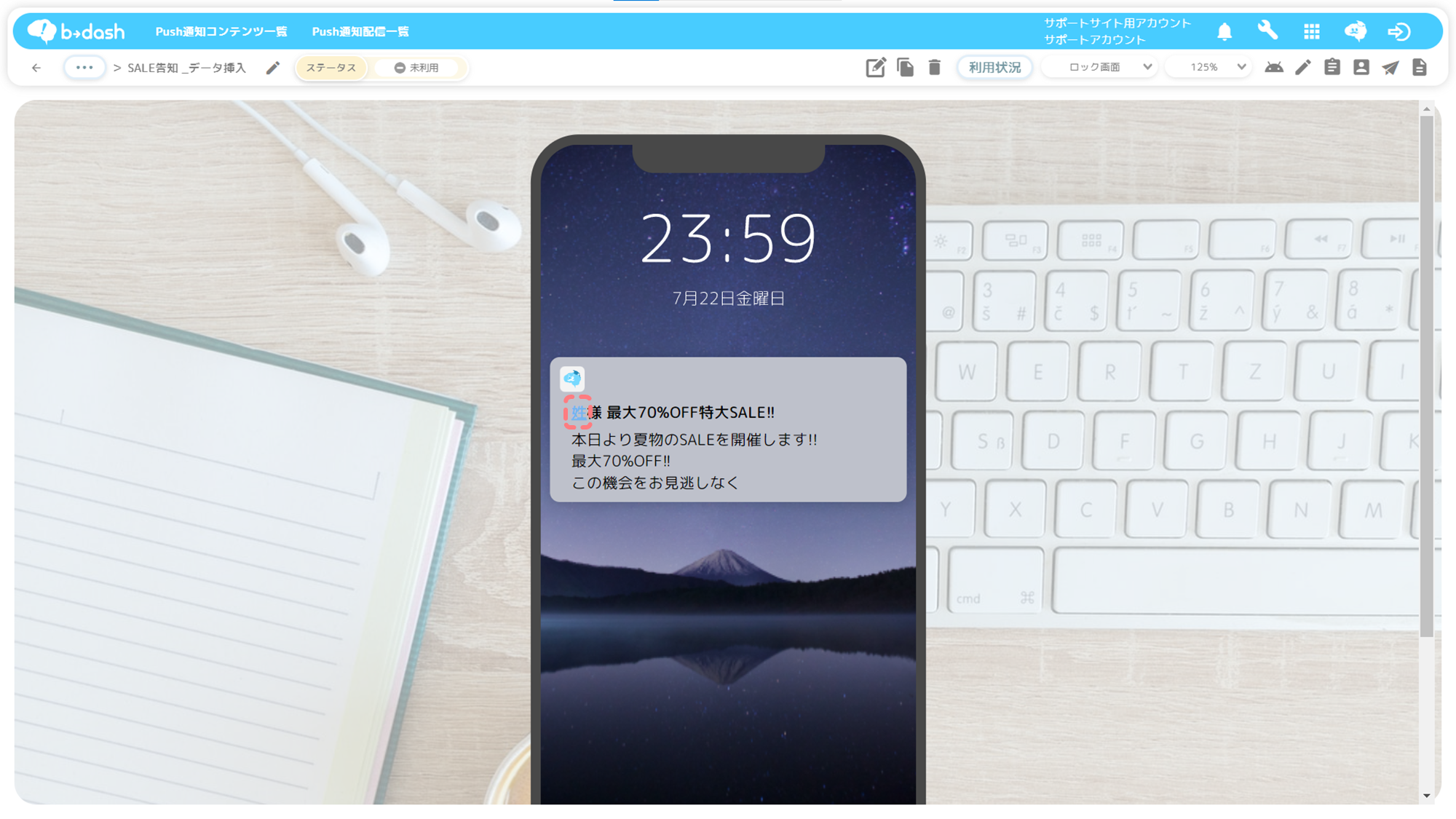 その他Push通知コンテンツの作成方法や機能については「Push通知コンテンツを作成したい」をご参照ください。