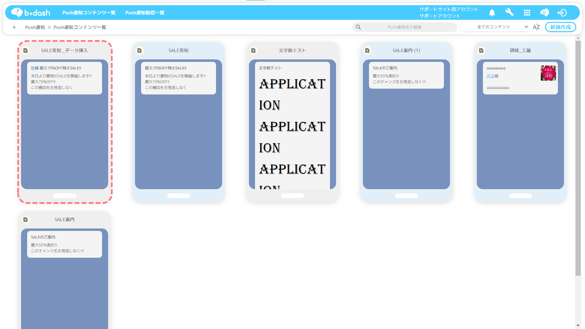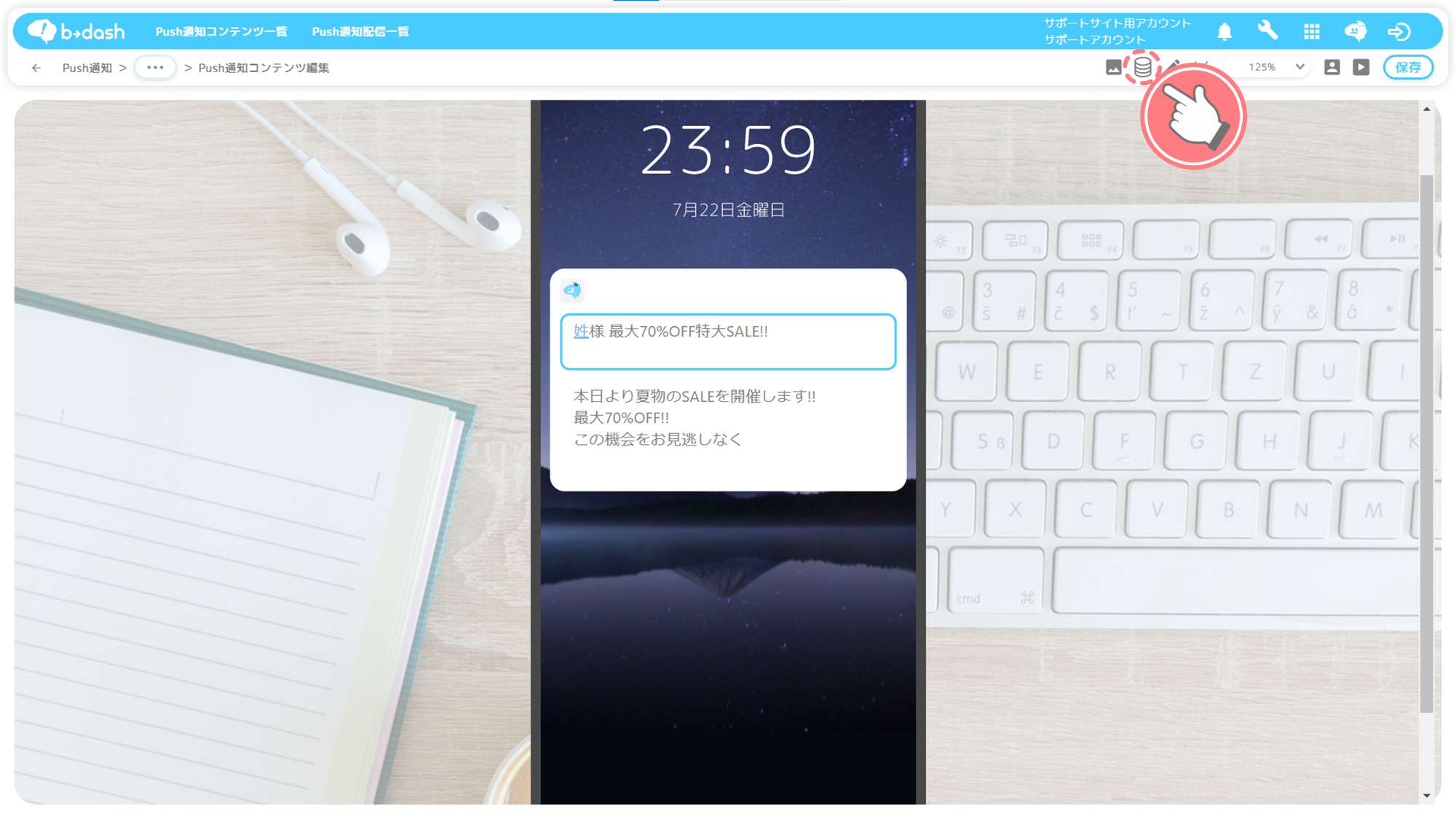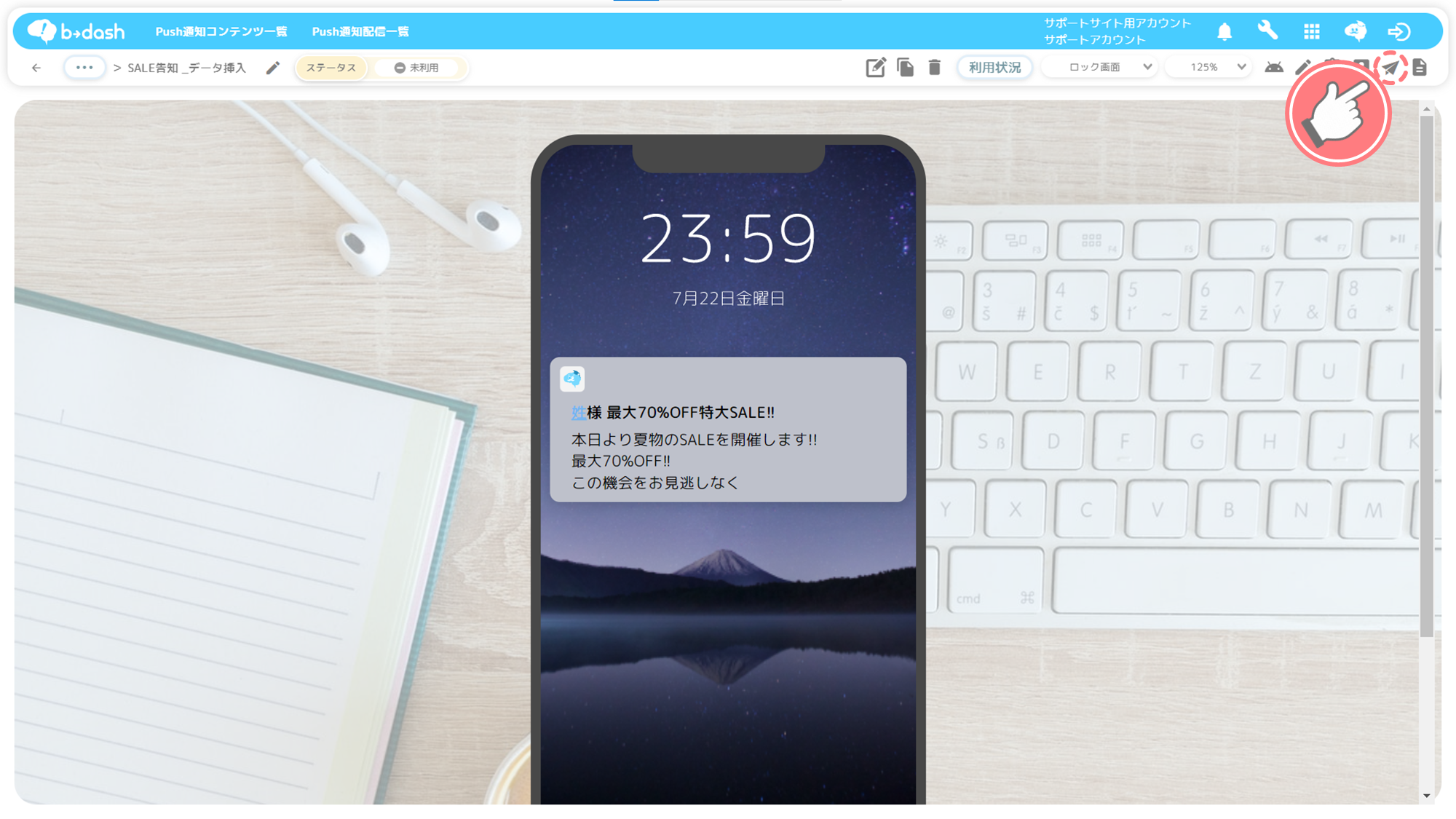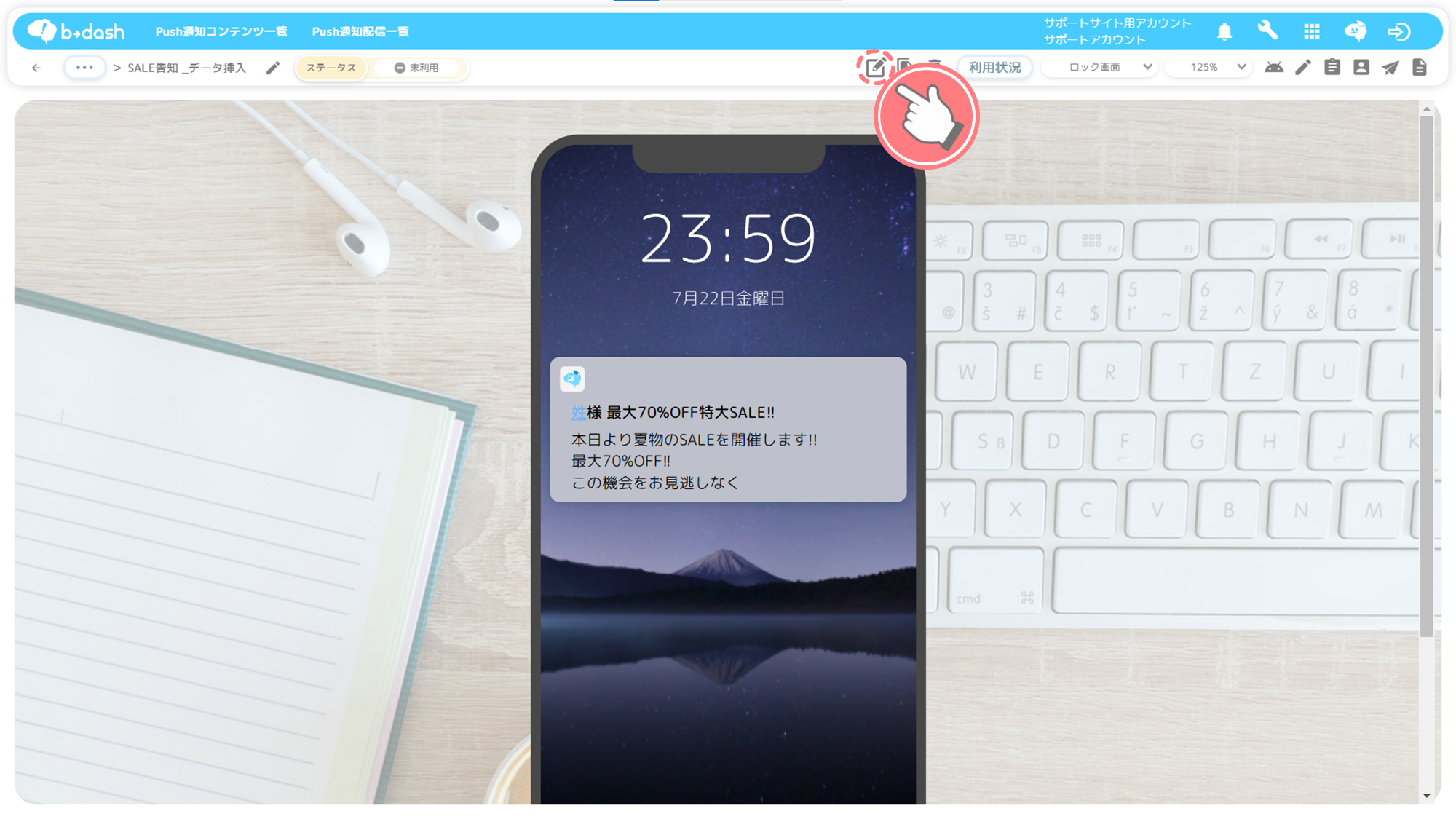 その他Push通知コンテンツの作成方法や機能については「Push通知コンテンツを作成したい」をご参照ください。
