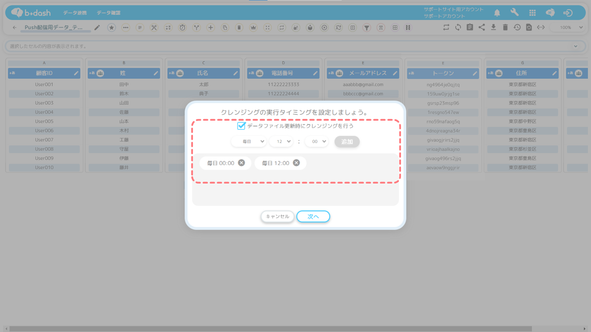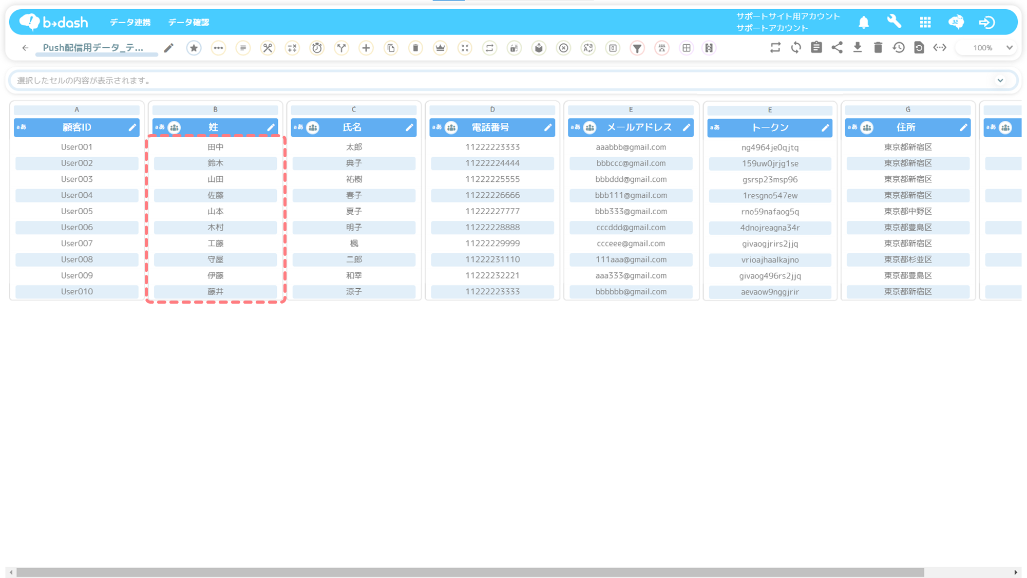 「データ挿入」に使用しているカラムの内容が、意図通りの場合は貴社カスタマーサクセス担当にお問合せをお願い致します