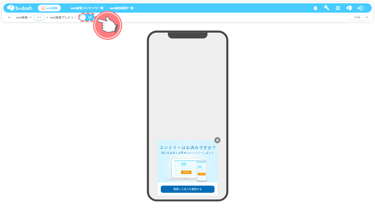 web接客のプレビューをPC/SP画面で表示する方法