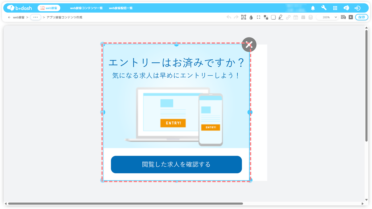 今回はテンプレートを使って以下のアプリ接客を作成する例をもとに、説明していきます!