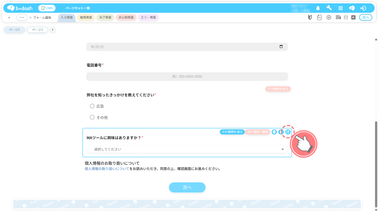 追加した「電話番号」にカーソルを合わせ「編集」のアイコンをクリックします