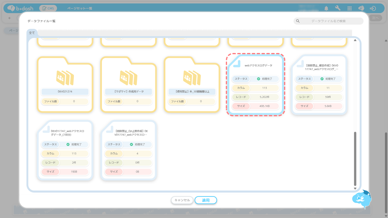 変更したいデザインのファイルを全て選択後、「適用」をクリックします