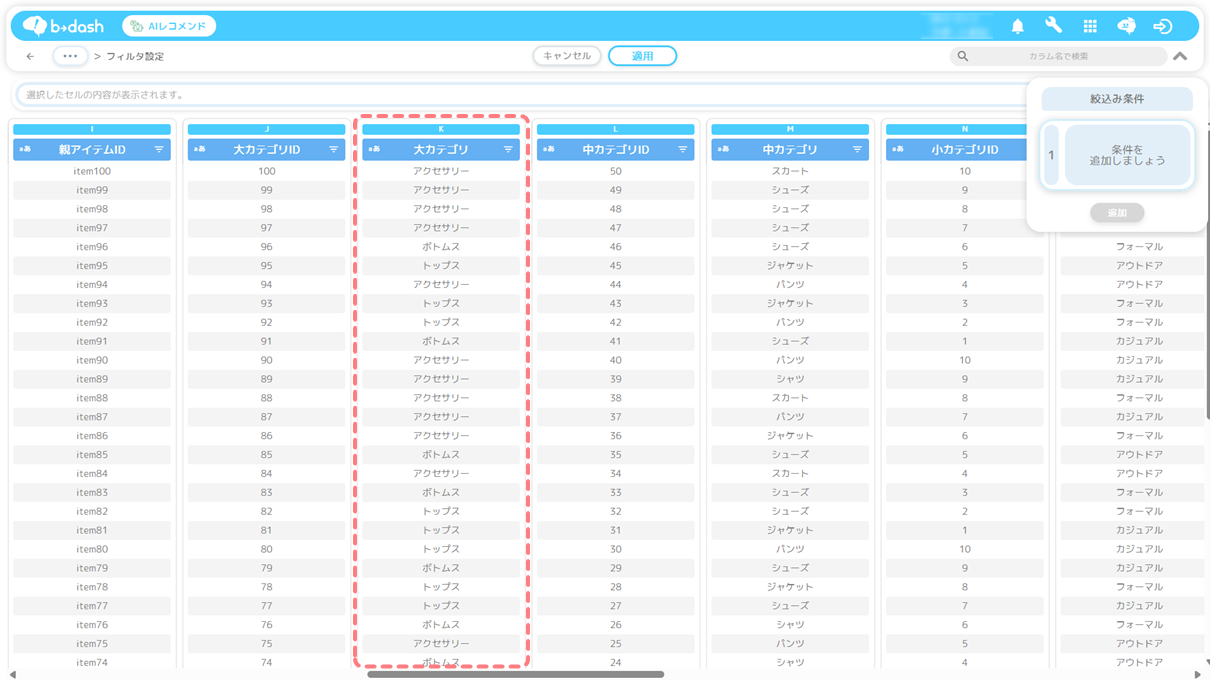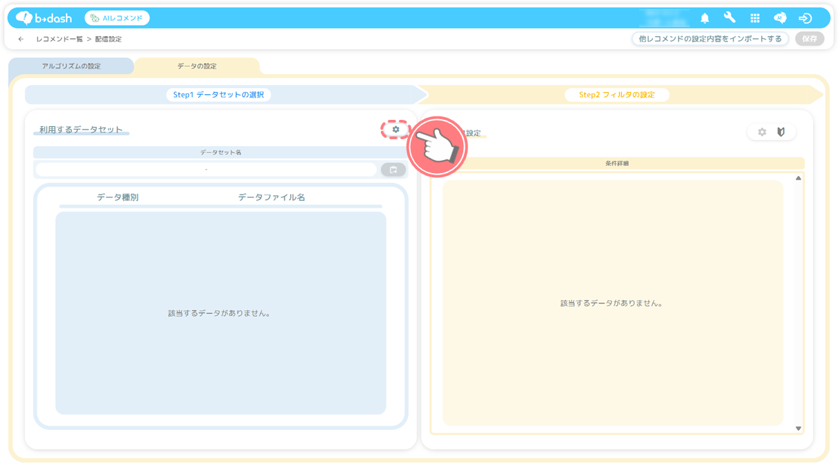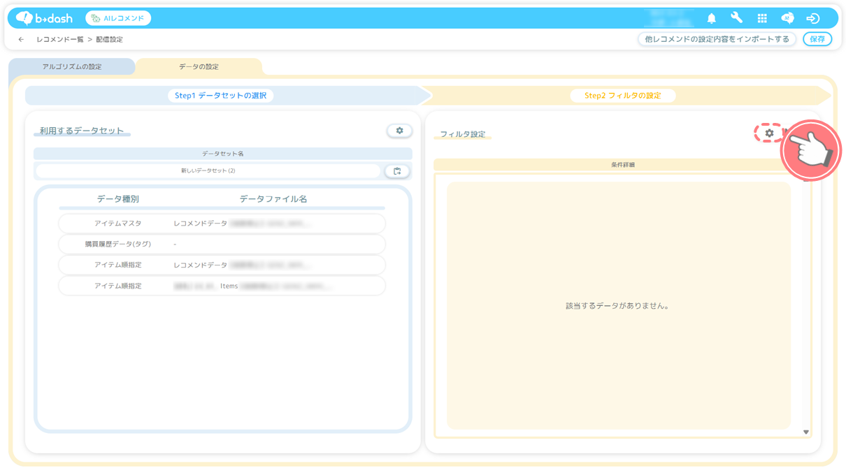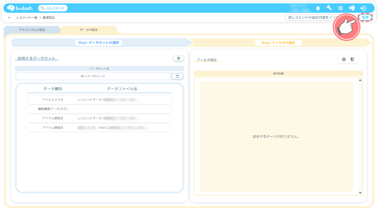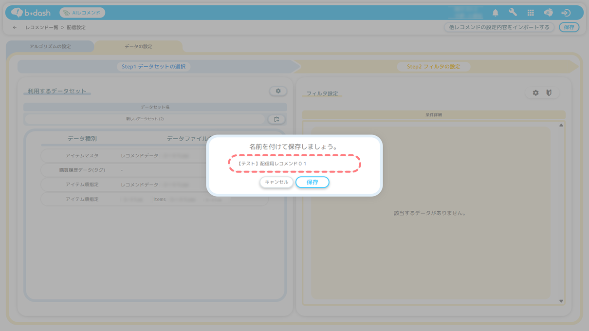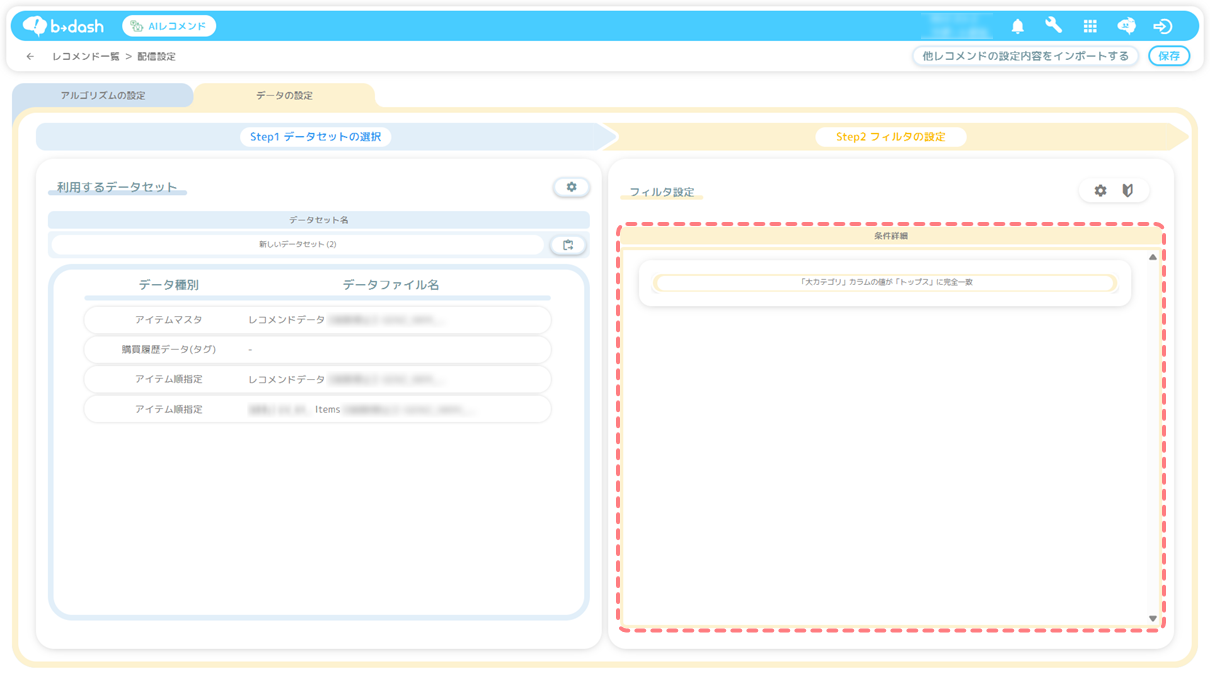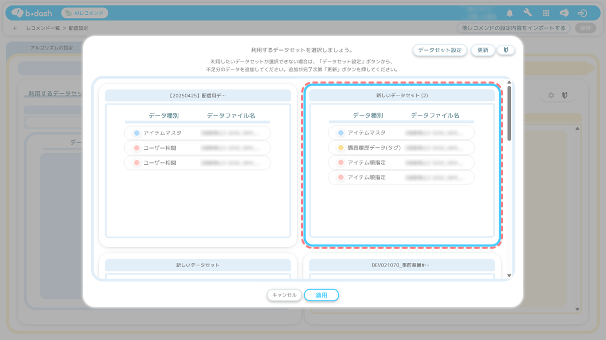 設定方法については「配信用レコメンド(AIレコメンド)のデータセットを作成したい」をご参照ください。
