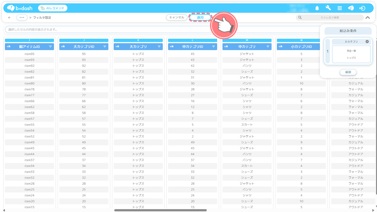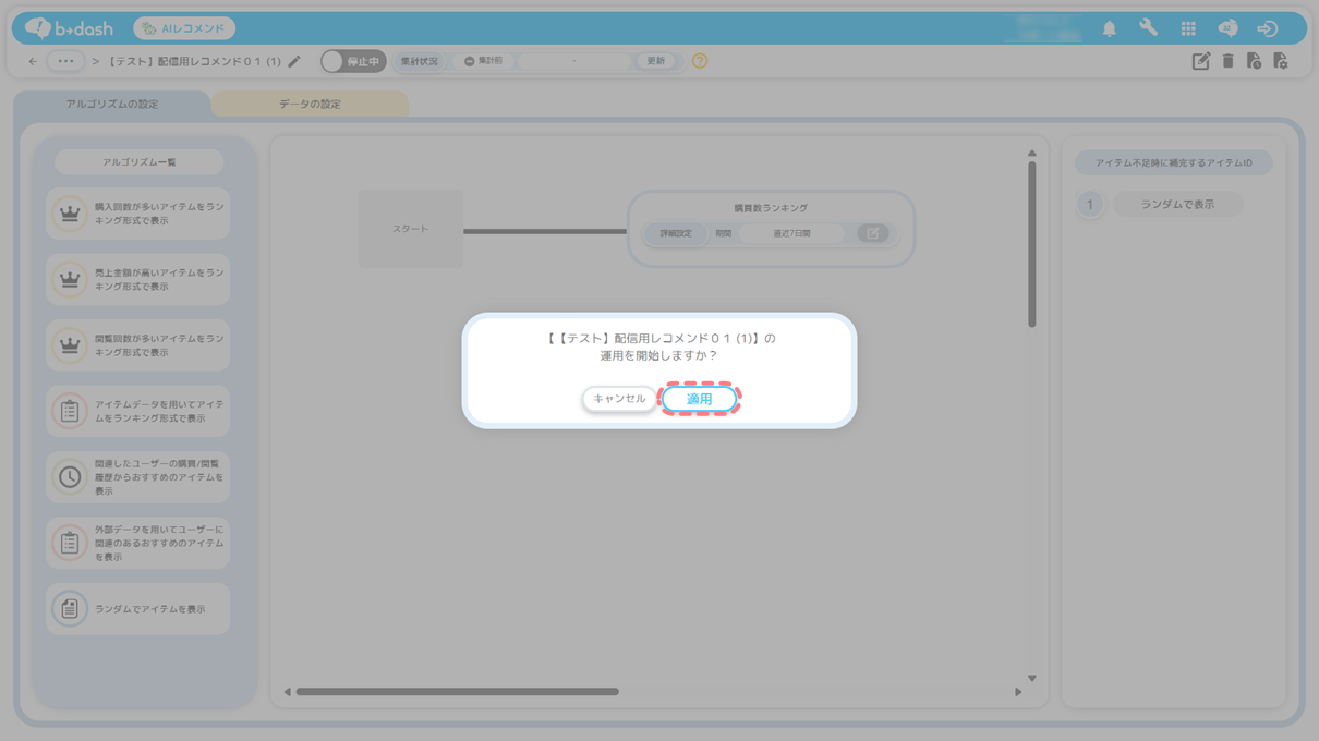 「配信用レコメンド」を選択し、「適用」をクリックします