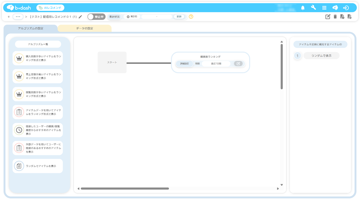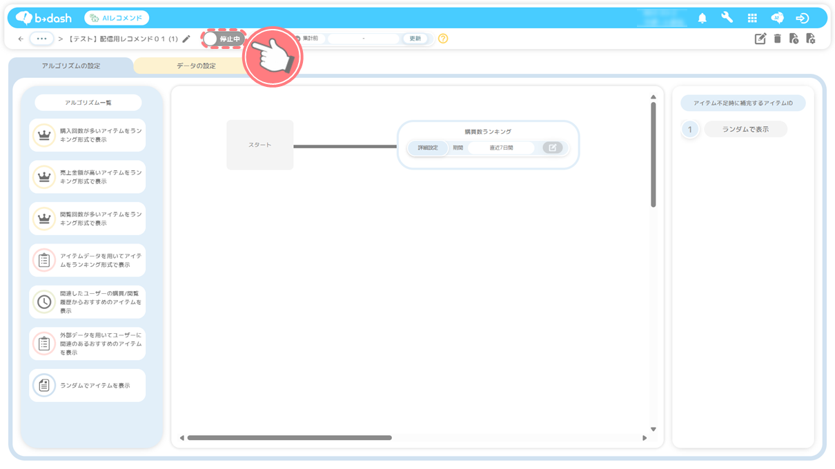 AIレコメンド(配信用レコメンド)に使用するアルゴリズムの選択を行います。
