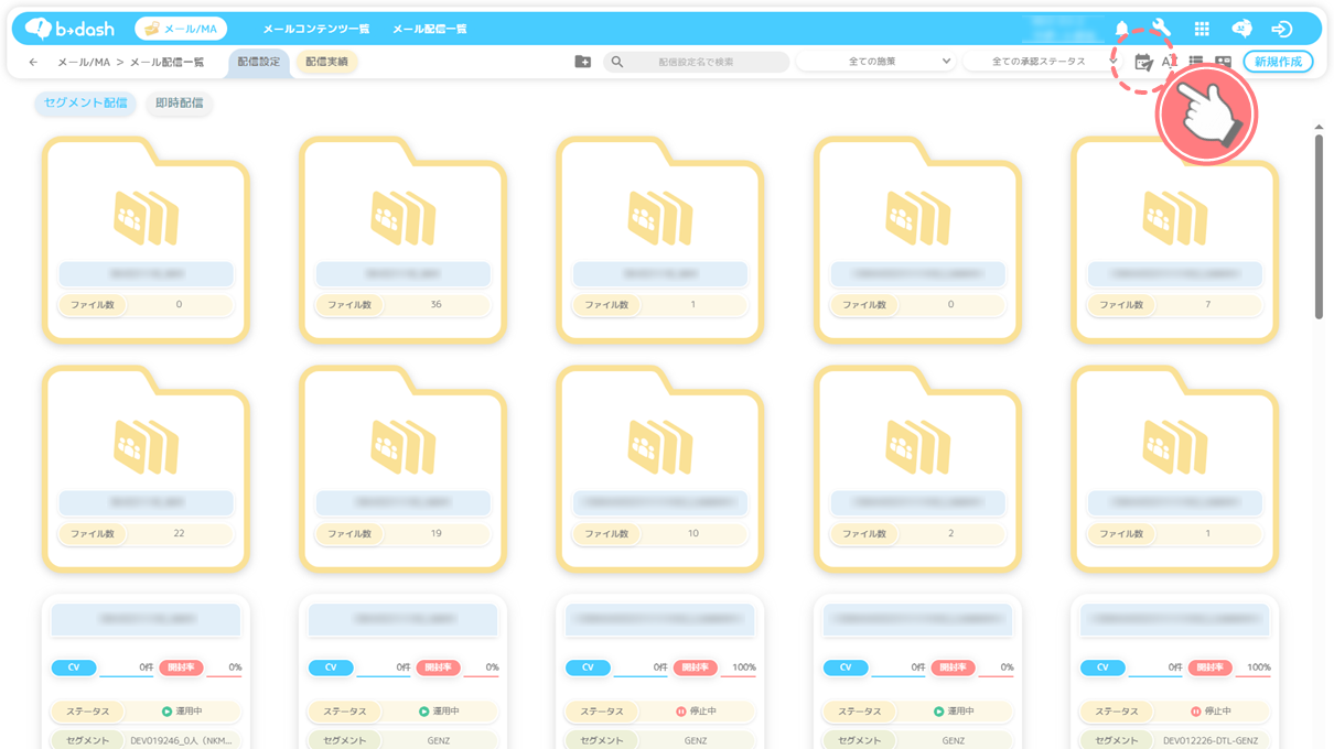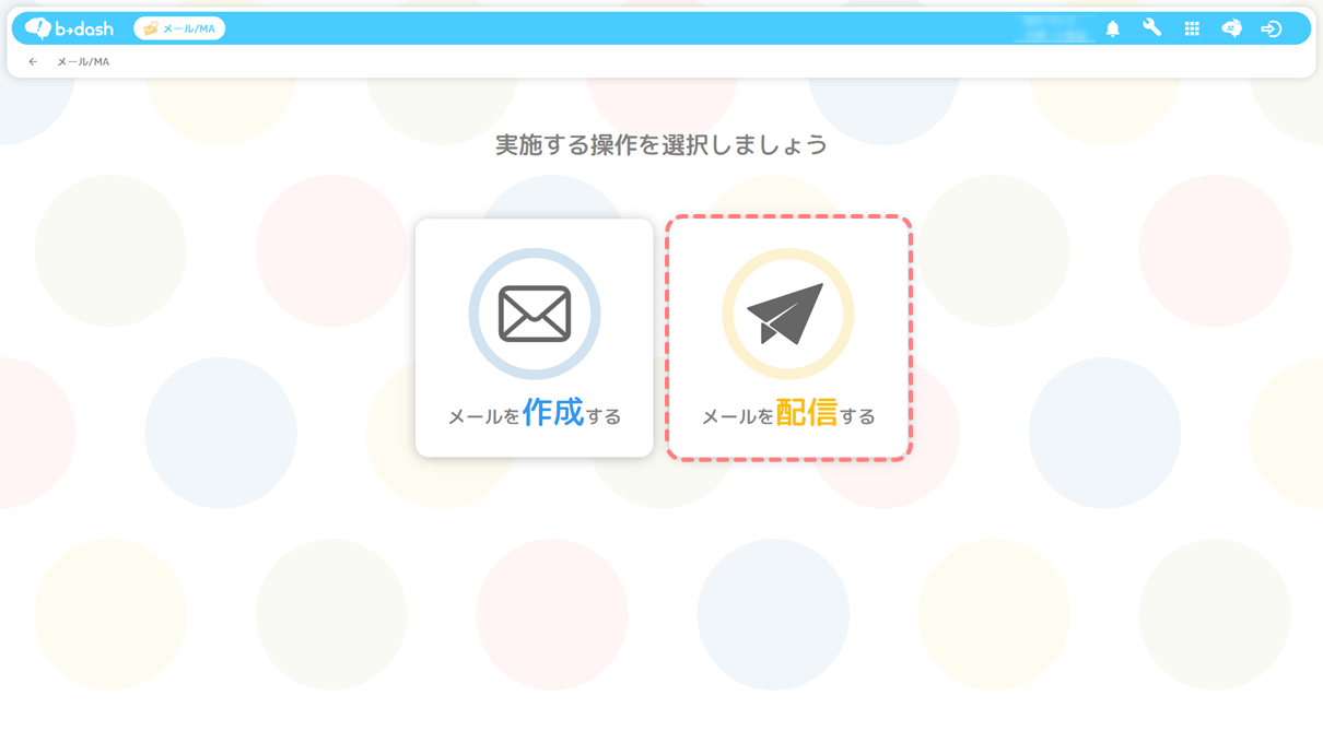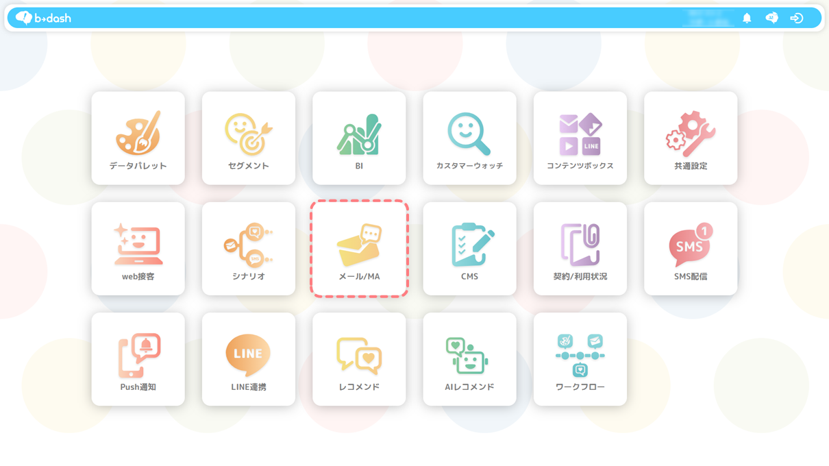 今回は『メール/MA』をクリックしていますが、『LINE連携』アプリ、『SMS配信』アプリ、『Push通知』アプリ、『シナリオ』アプリからも確認できます。