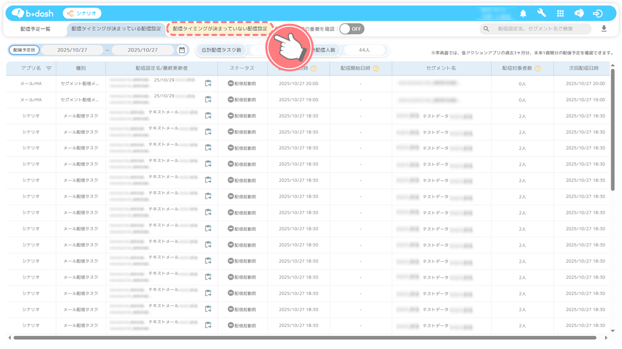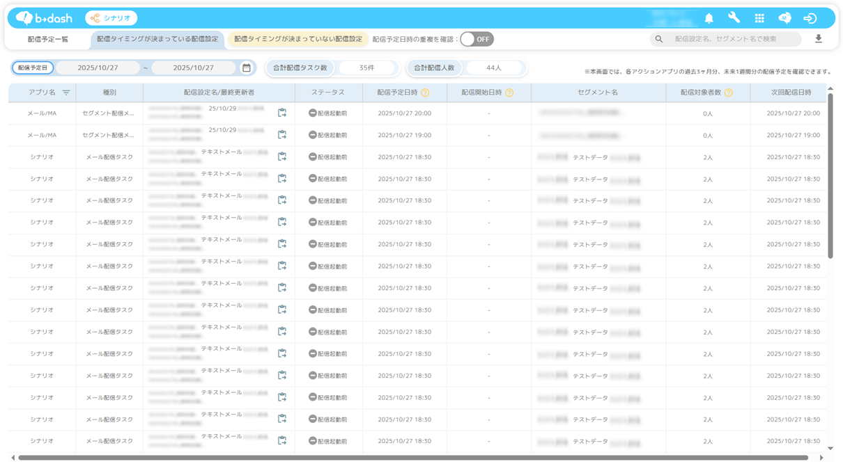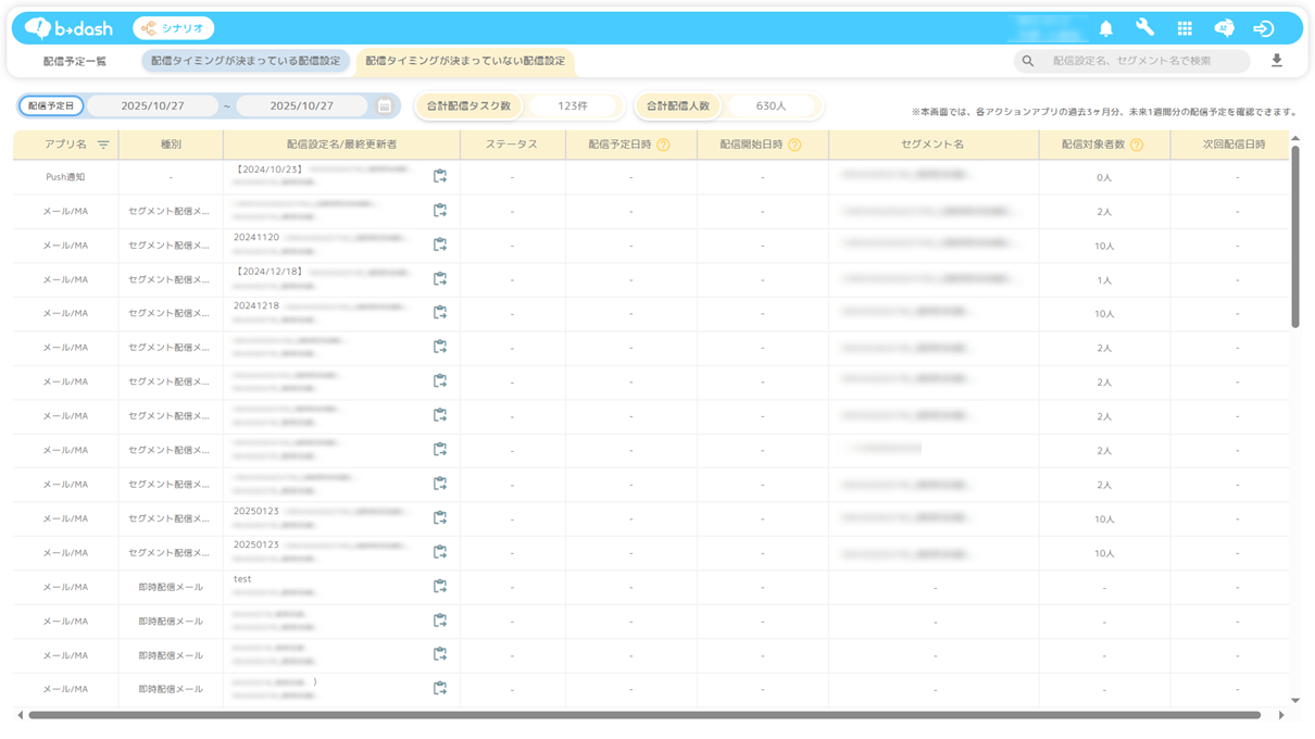 「配信予定を一覧で確認したい場合」「配信タイミングが重なりそうな場合に事前に把握し、配信時間を分散させたい場合」にご活用ください。